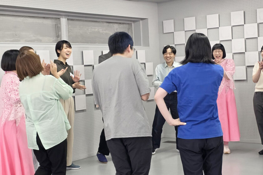 取材されたワークショップは、実際に3時間インプロを学ぶというものでした。アカデミーの生徒さんたちに混ざって、阿佐ヶ谷姉妹のおふたりがインプロを学んでいるのはなんとも不思議な光景でした。